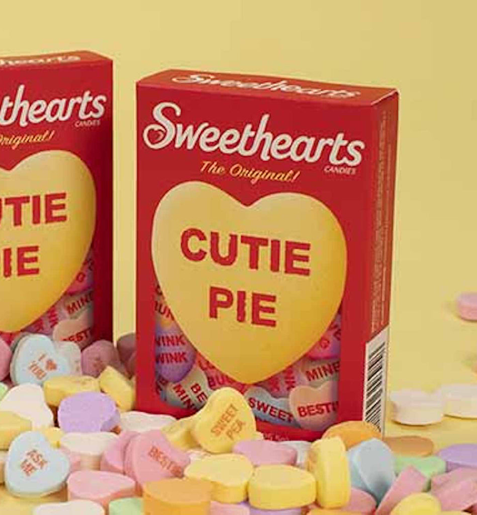 ⦿ Valentine’s Conversation hearts box, these delightful candies transform the iconic chew into heart-shaped confections perfect for the season of love.